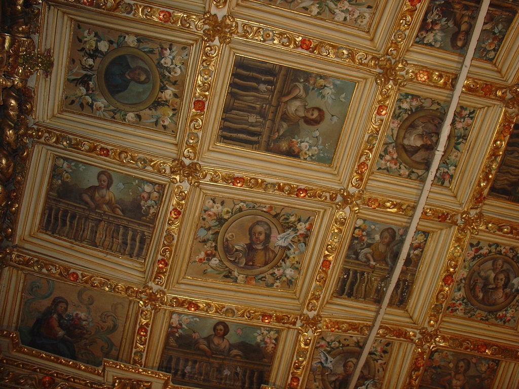edificada em estilo barroco, circundada por um recinto fechado ajardinado, sob a invocação de Nossa Senhora da